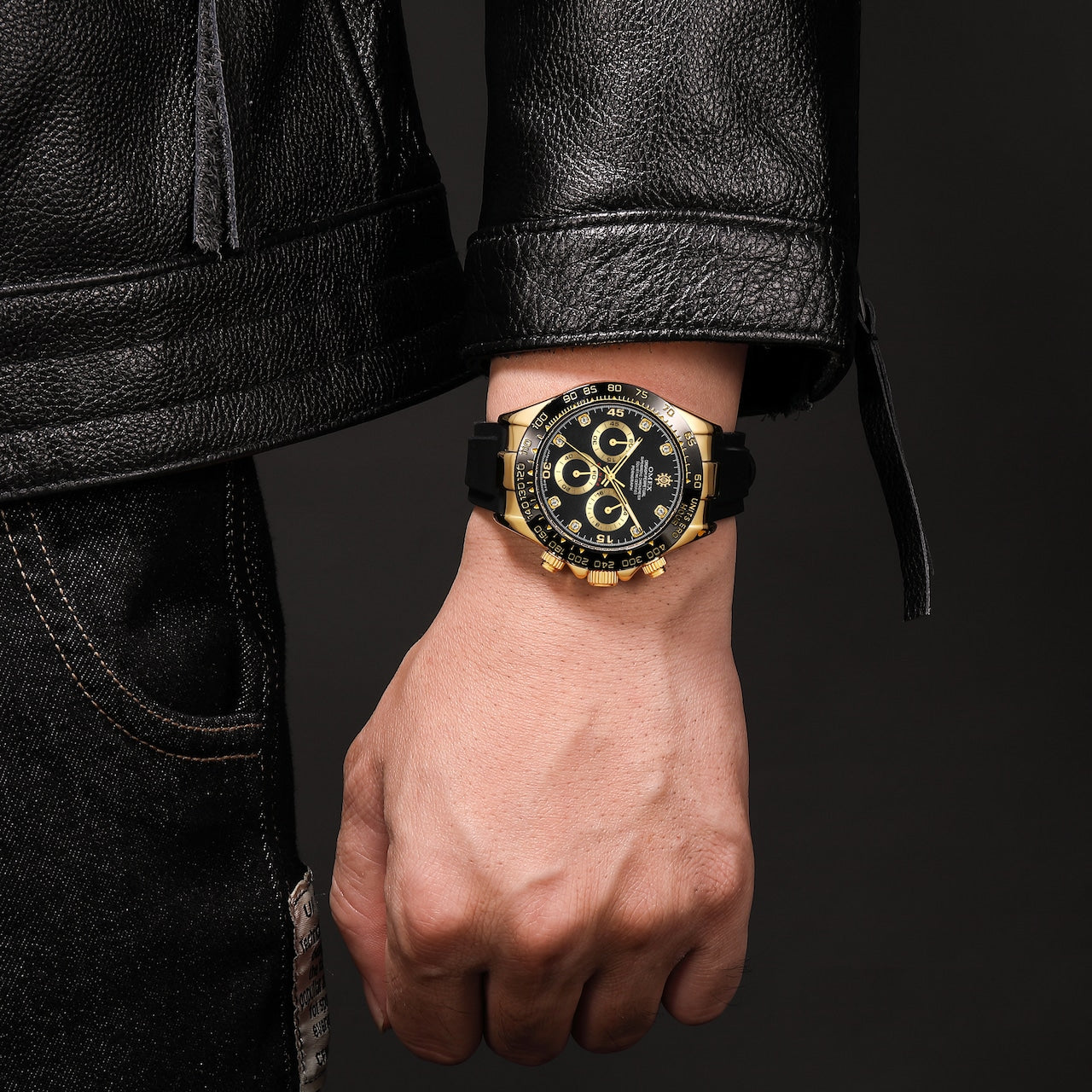 ※リューズやプッシュボタンのロックなどをしっかり締めた上での防水性能です。リューズを引いた状態などでの防水機能の保証は行っておりません。