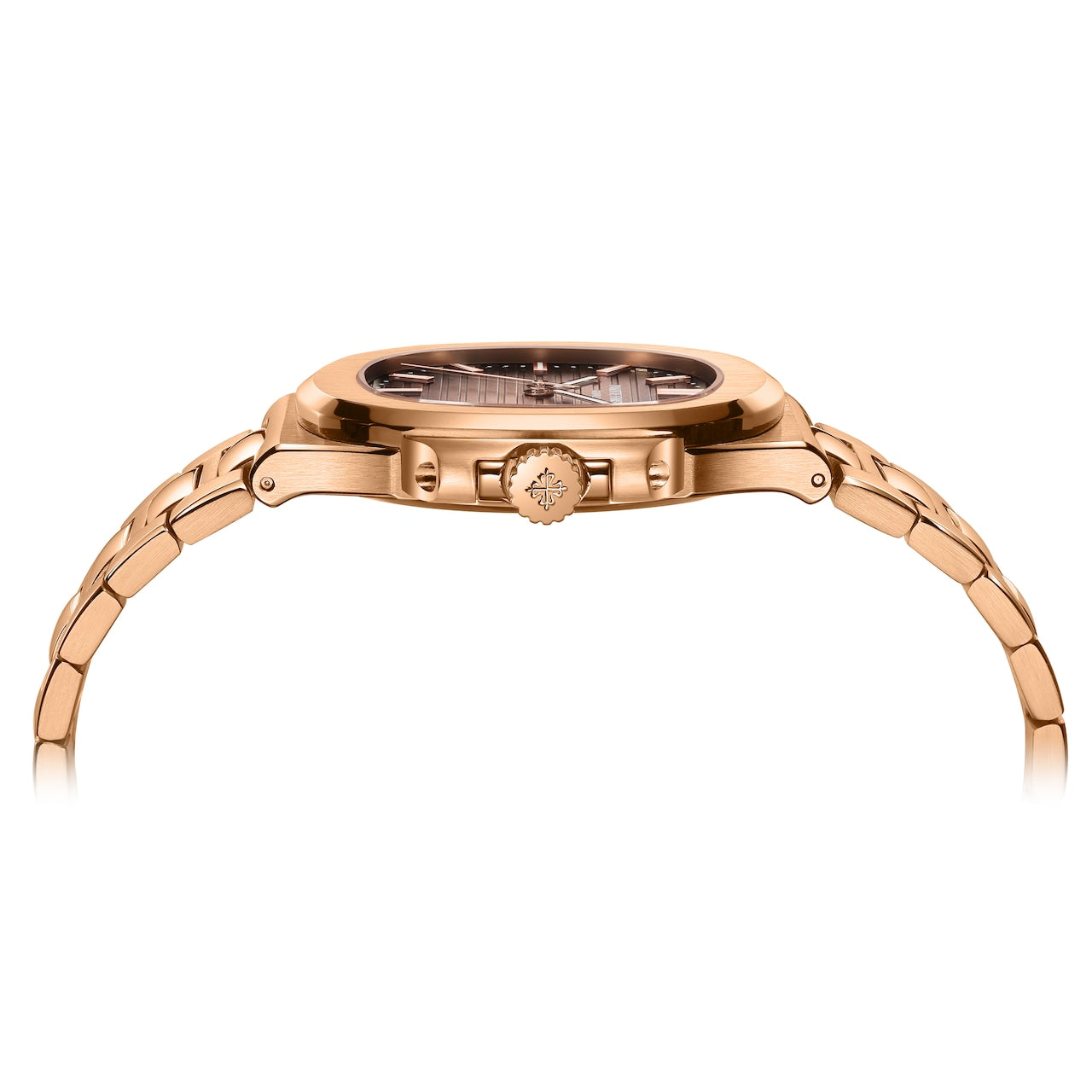 この腕時計の魅力は、エレガントなデザインだけではなく、ベルトは16のパーツから構成され優しく包み込む。