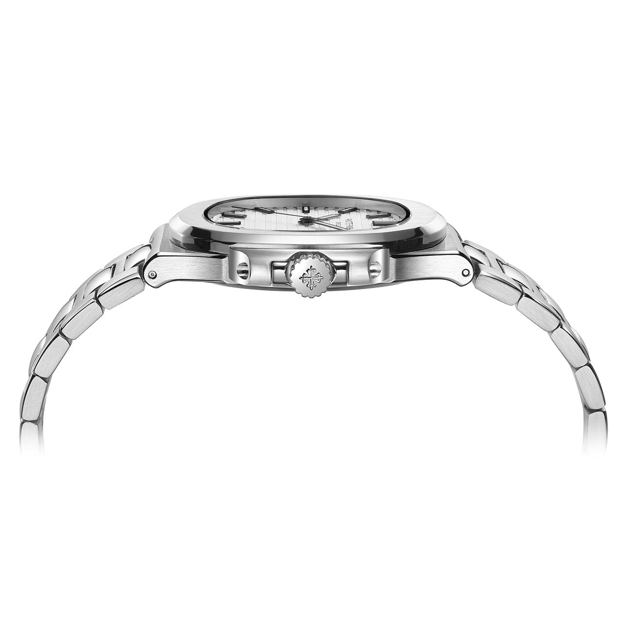 この腕時計の魅力は、エレガントなデザインだけではなく、ベルトは16のパーツから構成され優しく包み込む。