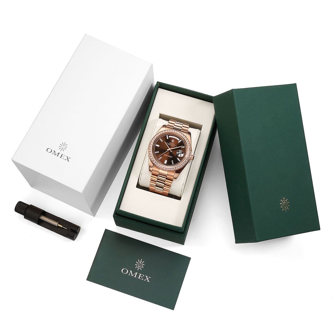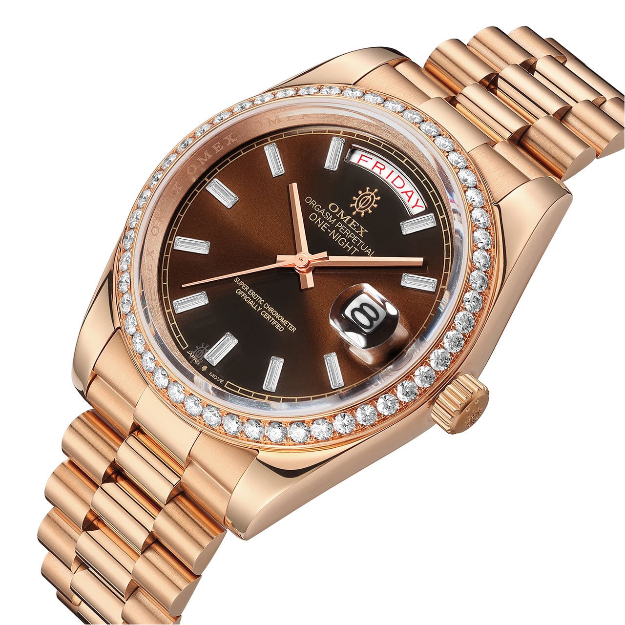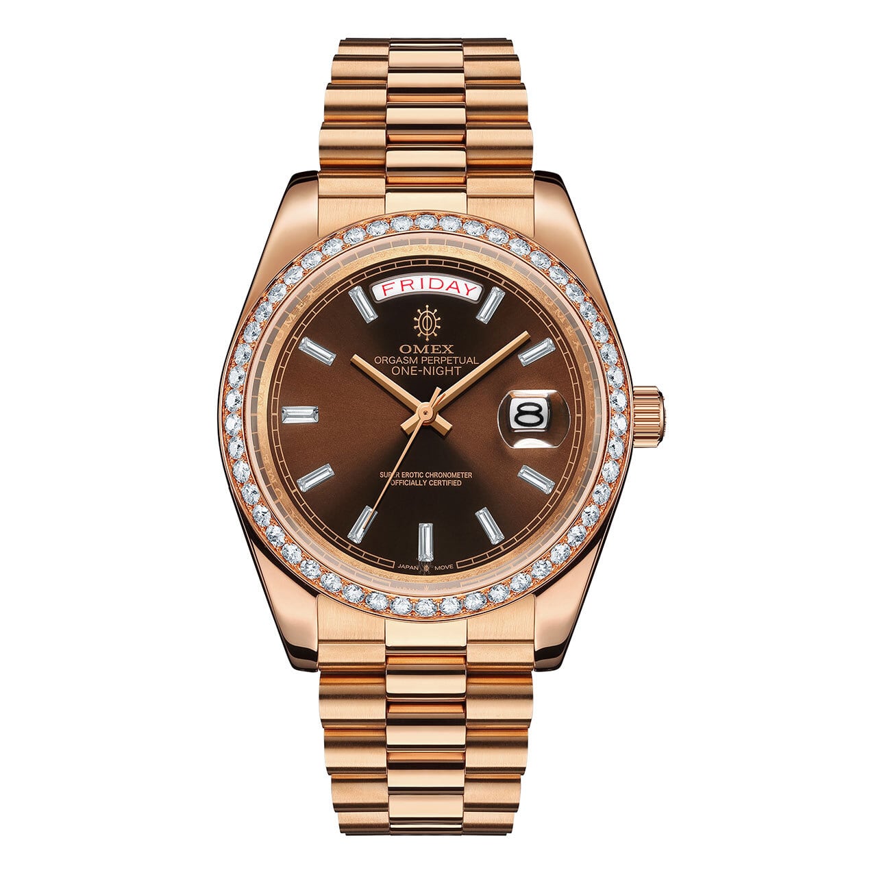 【スペシャルカスタムモデル】OMEX ワンナイト オートマチック モアサナイトカスタム ピンクゴールド×チョコレート
