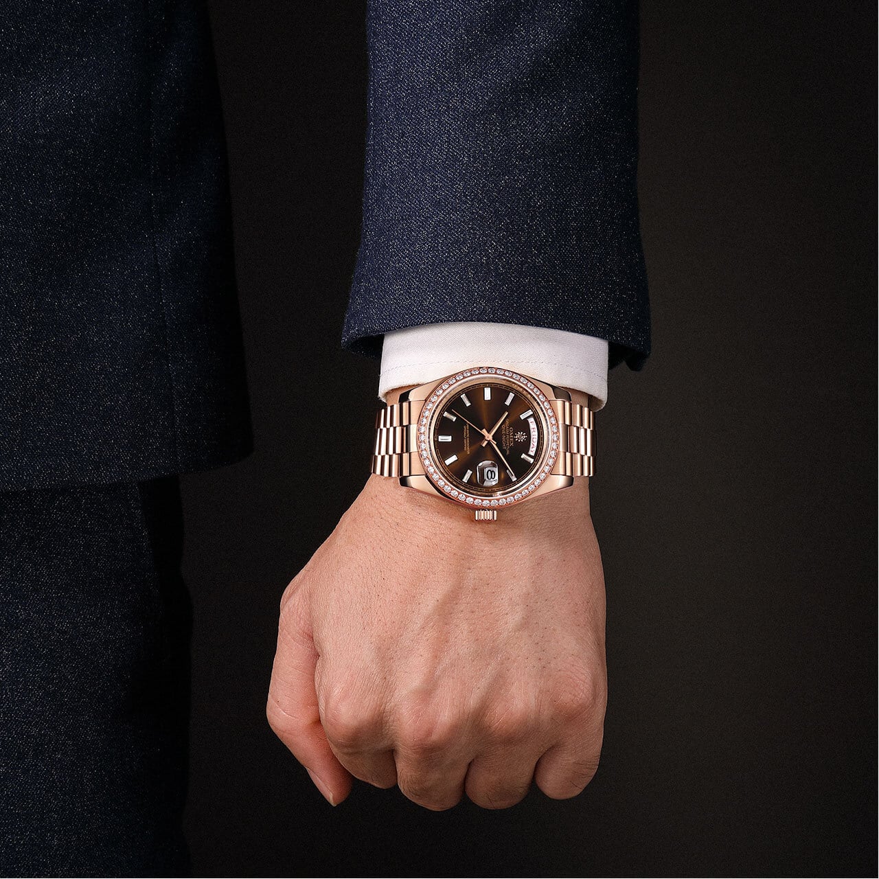 スーツの袖口にも収まりつつ、男らしい存在感を放つバランス。