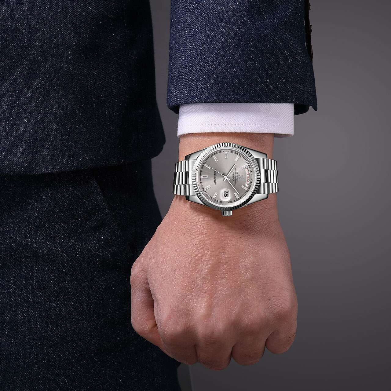 スーツの袖口にも収まりつつ、男らしい存在感を放つバランス。