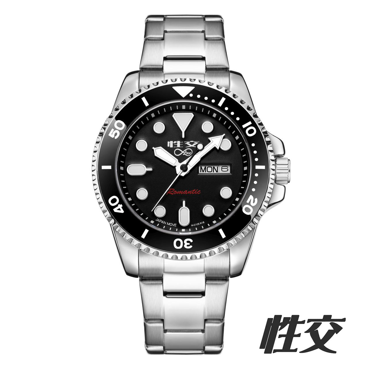 艶やかな漆黒の文字盤に浮かぶ「性交」の刻印。