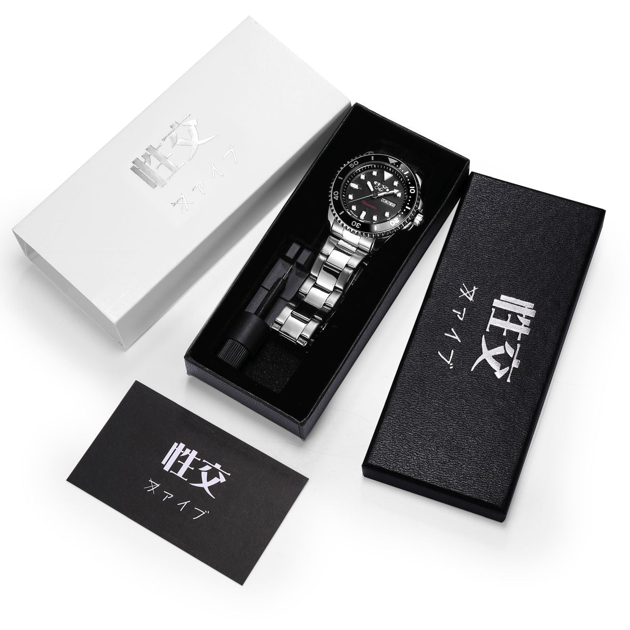 ※リューズやプッシュボタンのロックなどをしっかり締めた上での防水性能です。リューズを引いた状態などでの防水機能の保証は行っておりません。